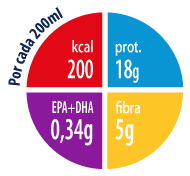 Dieta completa normocalórica e hiperproteica con bifidobacterium lactis, aceite de oliva virgen extra y con aporte adicional de leucina y ácidos grasos ω3 (EPA y DHA).